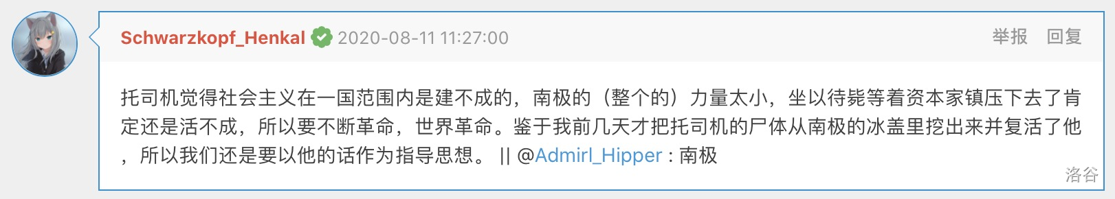 经常在工作时摸鱼的大姐姐,在被问起「为什么要到南极来工作」时,队友们纷纷回答“是为了将自己的青春和生命献给这无尽的雪原,谱写人类探索未知的诗歌”,只有她回答“感觉在南极工作很有趣的样子。”